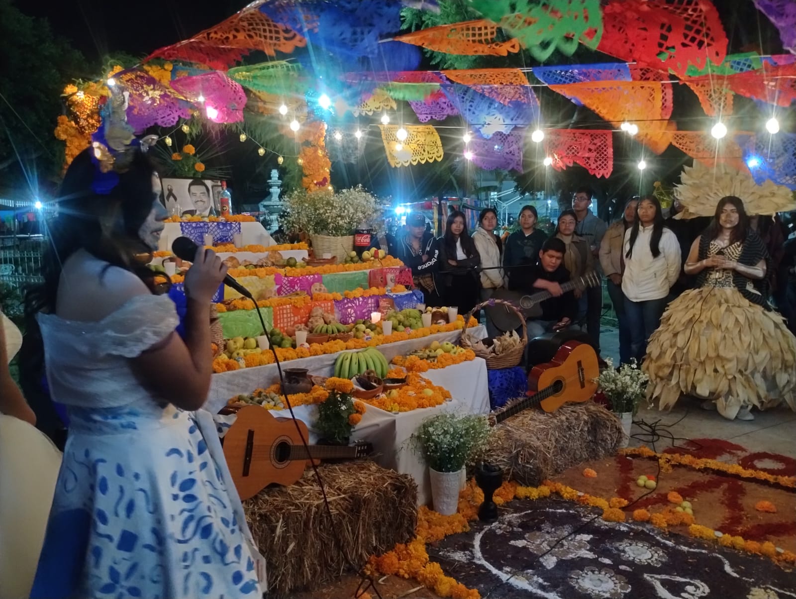 El ambiente se llenó de emoción cuando Elian Antonio Santos uno de nuestros estudiantes interpretó con gran talento la canción “Recuérdame”, recordando que esta fecha no es de tristeza, sino de encuentro, memoria y cariño. Las notas de la guitarra y las voces jóvenes crearon un momento de reflexión y alegría colectiva.