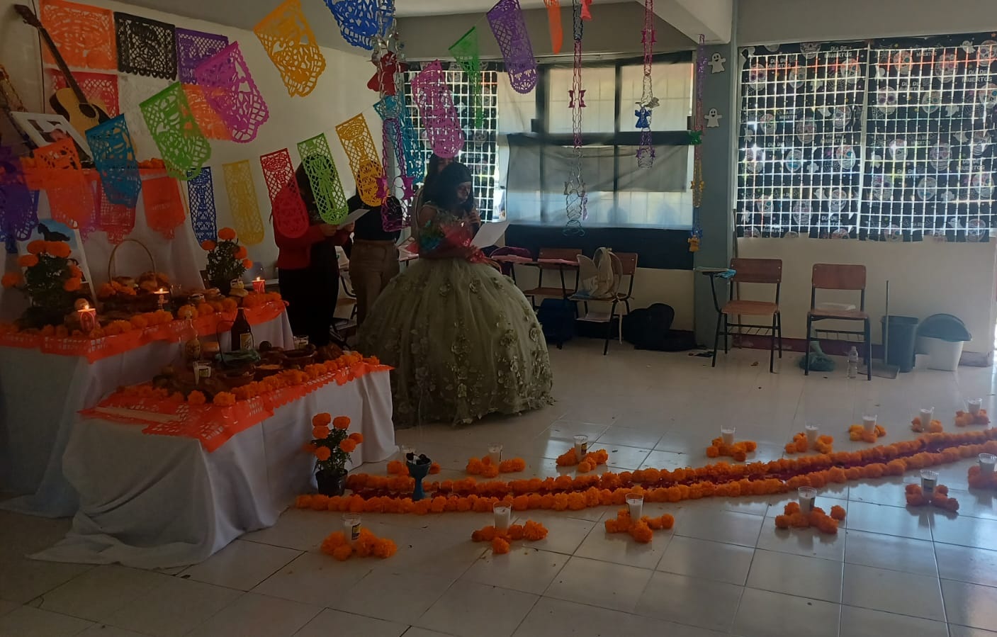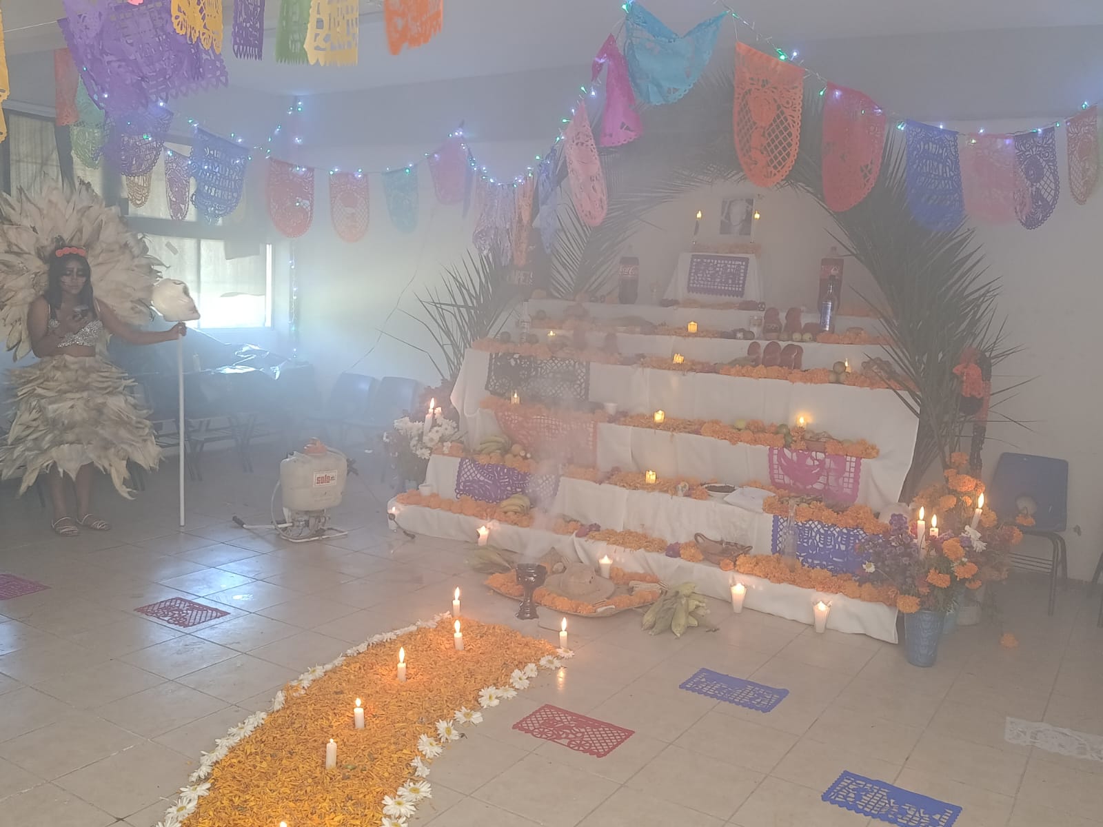Desde muy temprano, el ambiente en el plantel se llenó de color, aromas y música. Los pasillos se transformaron en espacios llenos de flores de cempasúchil, papel picado, veladoras, calaveras de azúcar y retratos que evocaban el recuerdo de nuestros seres queridos. Los grupos participantes mostraron un nivel excepcional de creatividad, organización y respeto por los elementos simbólicos de la tradición.