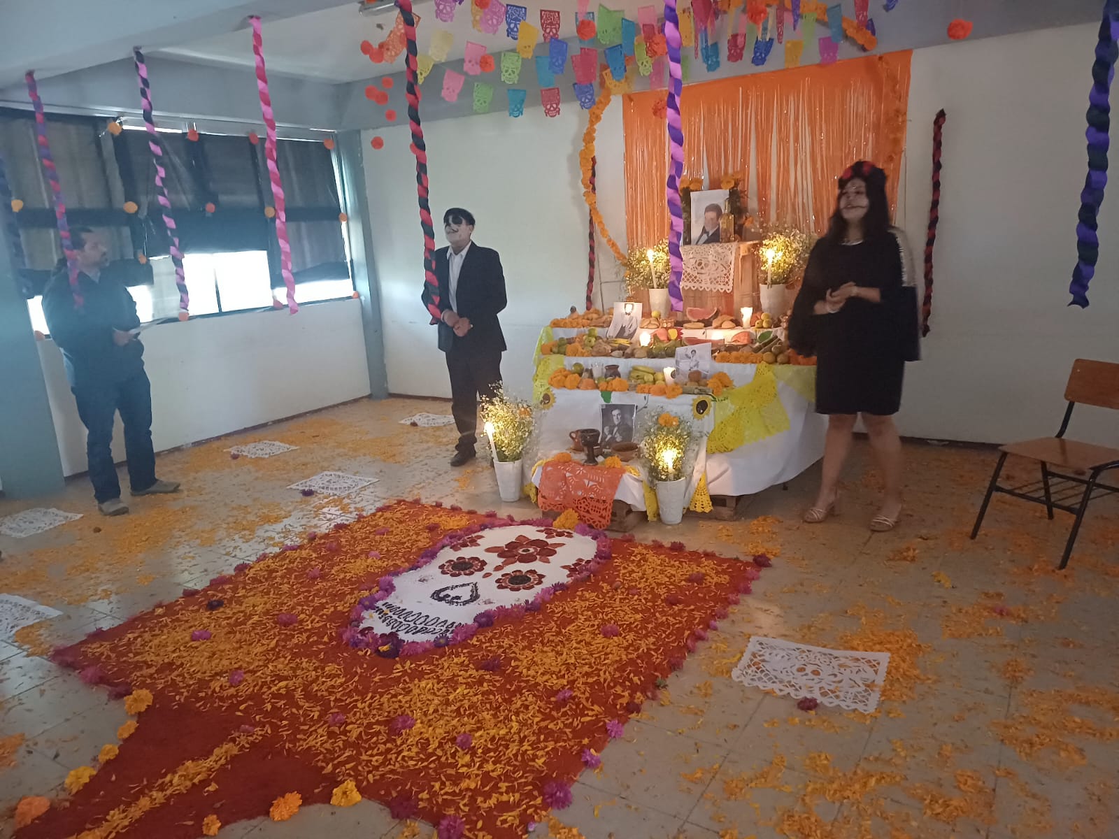 Desde muy temprano, el ambiente en el plantel se llenó de color, aromas y música. Los pasillos se transformaron en espacios llenos de flores de cempasúchil, papel picado, veladoras, calaveras de azúcar y retratos que evocaban el recuerdo de nuestros seres queridos. Los grupos participantes mostraron un nivel excepcional de creatividad, organización y respeto por los elementos simbólicos de la tradición.