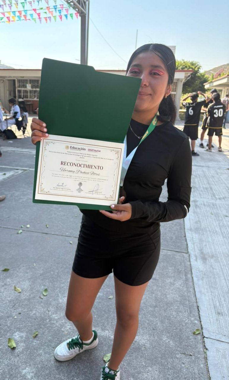En la rama académica, la alumna Harumy Pacheco Flores obtuvo el tercer lugar en el área de Humanidades, destacando por su sensibilidad, preparación y amor por sus raíces. Su participación incluyó un emotivo video sobre la importancia de conservar las tradiciones, especialmente el carnaval, elaborado con el valioso apoyo de integrantes de su propia comunidad. Se reconoce de manera especial al grupo representativo del Carnaval de Molcaxac, quienes colaboraron en el diseño del material presentado, fortaleciendo el vínculo entre escuela y comunidad.